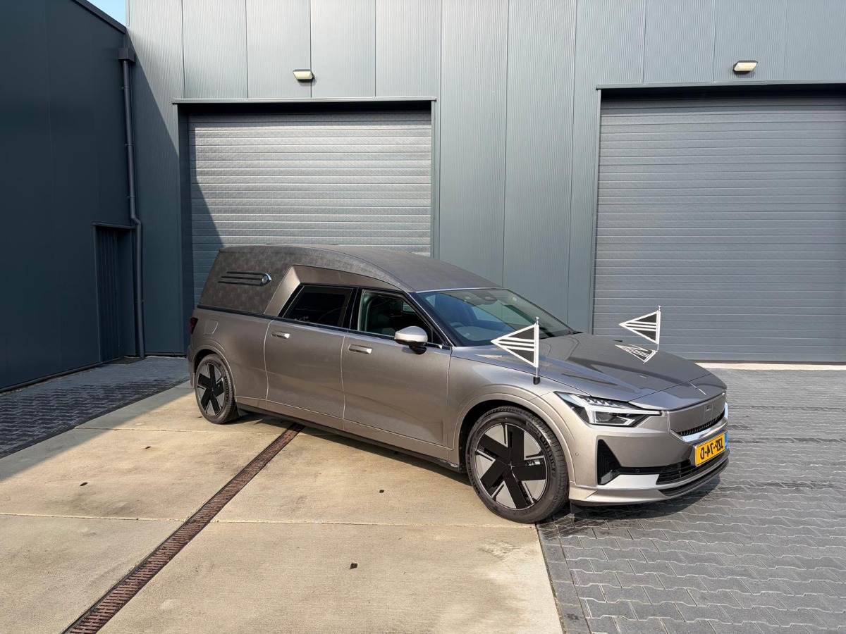 Voor staatsievervoer hebben we recentelijk onze duurzame koers versterkt met een Tesla Model 3 rouwauto.
