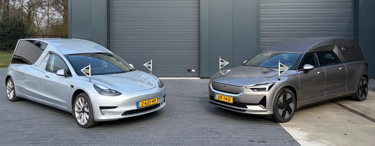 Voor staatsievervoer hebben we recentelijk onze duurzame koers versterkt met een Polestar 2 en een Tesla Model 3 rouwauto.